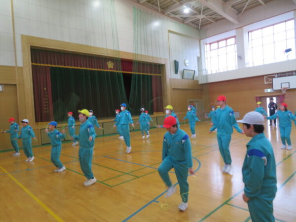 1年生2年生1・2年生 朝運動でなわとび練習