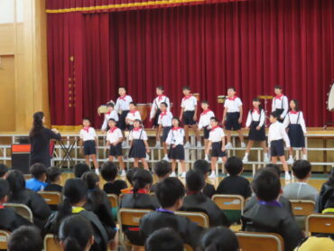 5年生 合唱「ビリーブ」「怪獣のバラード」 合奏「アフリカン・シンフォニー」