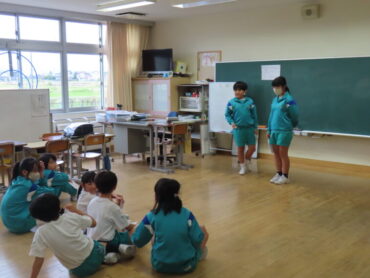 この活動は、異学年の友達ともなかよくなろうと、清掃の縦割りグループの6年生がゲームや遊びを企画してくれました。