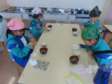 みそ汁は、味見をしながらみそを入れていきました。