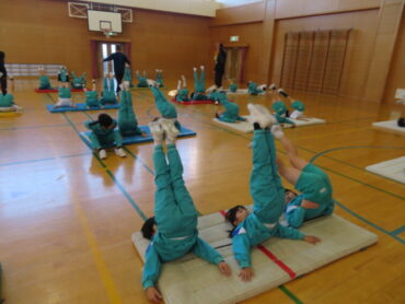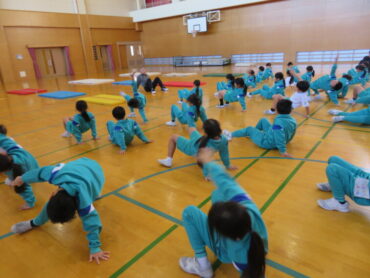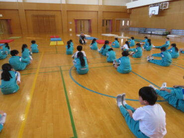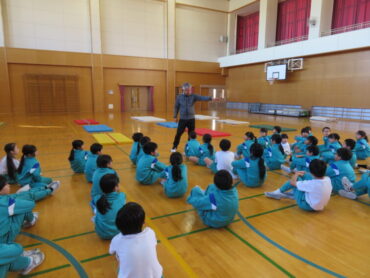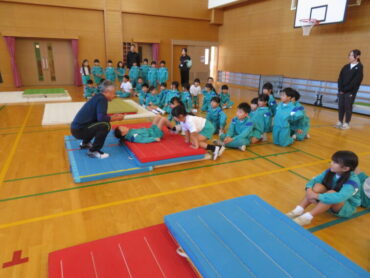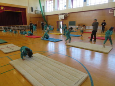 2年生は、富山大学から運動あそびアドバイザーの佐伯先生をお招きし、マットを使った運動あそびをしました。