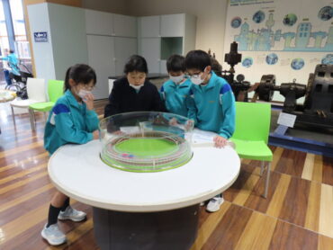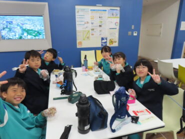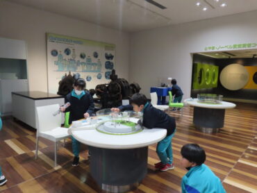 紙漉きを終えた後は、早目に科学博物館に移動し楽しみにしていたお昼タイムにしました。家の人が作ってくれたお弁当を食べた後は、グループごとに館内を回りました。おもしろ実験を相談したり協力したりしながら楽しみました。