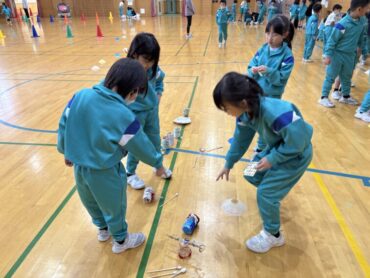 今日は、1年生を招待して、自分たちが作ったおもちゃで遊んでもらう日です。