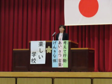 始業式では、どの子も校長先生の話を真剣に聞いていました。充実した冬休みを過ごしたようですね。
