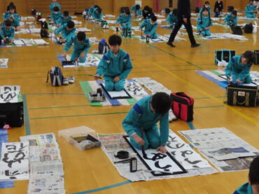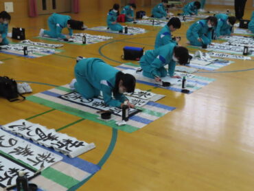 書初大会では、練習の成果を発揮しようと一文字一文字真剣に書く様子が見られました。