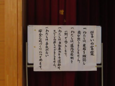 最後に、全員で誓いの言葉を述べ、交通安全に対する意識を高めました。これからも交通安全の決まりを守り、安全に登下校しましょうね。