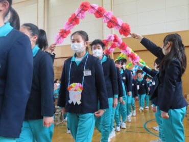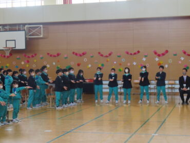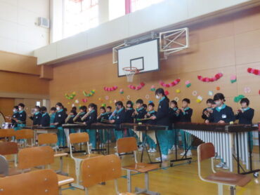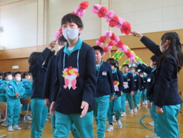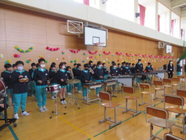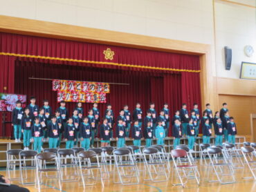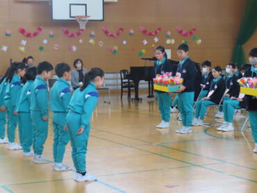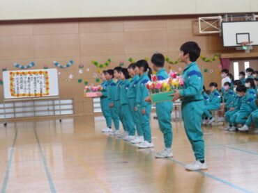 また、1~5年生で「ありがとうの花」を合唱し、6年生に感謝の気持ちを伝えました。
